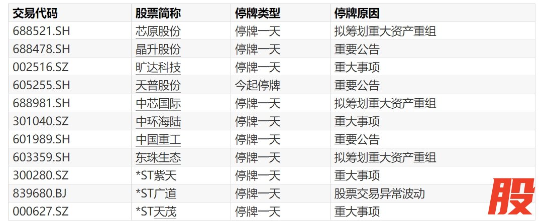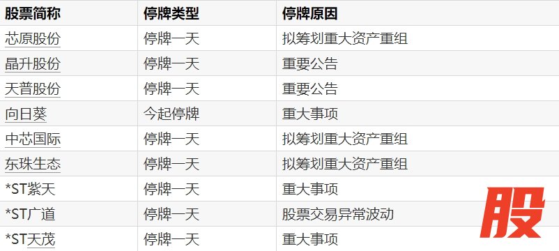 A股停牌提示:9股今日停牌A股停牌提示:9股今日停牌