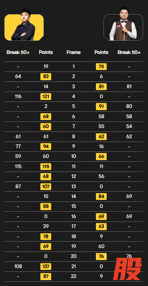 从首阶段4-4战成平手,随着时间的推移赵心童发挥更加稳定,准度一直特别在线,进攻思路明确,上手快且高效,整体处理游刃有余,慢慢扩大优势,偶尔出现小失误,但也能迅速作出调整,共计打出三杆破百和五杆50+,卫冕冠军状态可圈可点。丁俊晖表现中规中矩,手感不差,但走位似乎一般,导致较多简单失误,围绕高分球的控制效果差,9-13遗憾结束本届世锦赛之旅。
